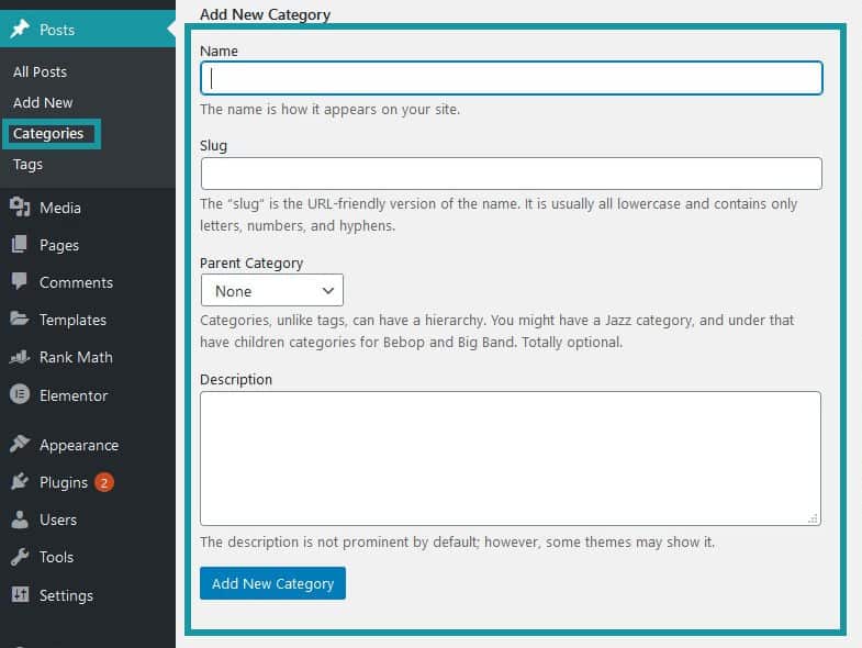 The key topic of the article. A blog’s content is typically split into different categories. Readers may look at various categories to see all of the articles that belong to that category. Go to Dashboard > Posts > Categories to handle your categories. You can also add a new category directly from here. More details on categories is covered below.