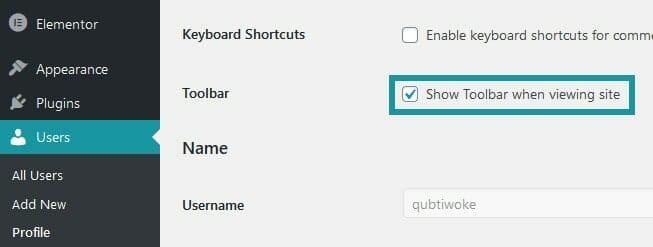 While most users find the WordPress admin toolbar helpful, some users may choose to disable it from the site’s front end. Mind that you can only see the WordPress Admin Bar if you’re logged in to the account. Click the Edit my Profile link to turn off this view. You’ll now see a check box to Display Toolbar while Browsing Site on this screen. To turn off this view, uncheck the box, then skip to the bottom and press Update profile. The WordPress Admin Bar will no longer be available when you return to the front end of your site.